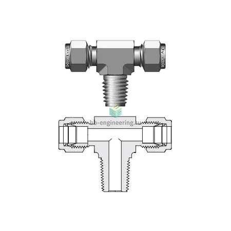 Форма фитинга: тройник T-образный с нар. резьбой осевой • Подключение: R1/2-5/8″ • Материал корпуса: сталь нержавеющая AISI 316