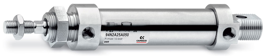 Цилиндры двустороннего действия имеют два отверстия для подвода сжатого воздуха – для выдвижения и втягивания штока соответственно.