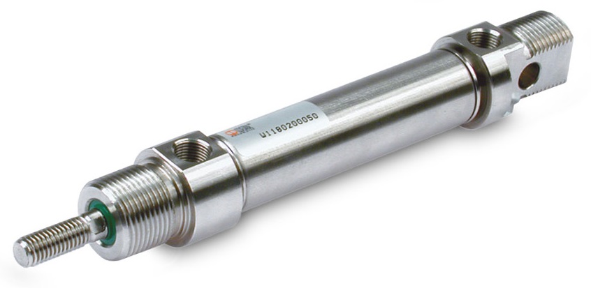 Цилиндры двустороннего действия имеют два отверстия для подвода сжатого воздуха – для выдвижения и втягивания штока соответственно.