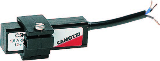 Магнитные датчики положения модели CSN 2032-0 и CSM 2432-0 состоят из геркона, дополненного схемой электронной защиты, световой индикацией красного цвета и изолированным герметичным корпусом. Модель CSN 2032-0 оборудована специальной системой, позволяющей устанавливать датчик непосредственно на шток цилиндра. С помощью двух винтов фиксируется продольное положение датчика на цилиндре, с помощью третьего – угловое положение. Три контакта, обозначенные цифрами 1, 2 и 3 позволяют подключить датчик определённым образом, как показано на схеме 1: а) для резистивной или индуктивной нагрузки используются контакты 1 и 2; б) для емкостной нагрузки используются контакты 1 и 3.