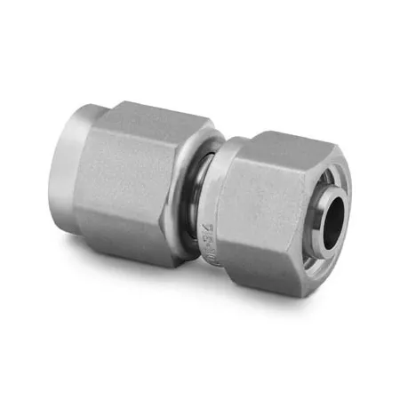 Корпус и комплектующие выполнены из нержавеющей стали (материал корпуса AISI 316), конструкция — две обжимные втулки + гайка с резьбой UNF 9/16"-18. Тип уплотнения резьбы — отсутствует (герметизация — металло‑металло по обжиму/флэру). Рабочие среды: гидравлические масла, вода, технологические и топливные газы, инертные среды. Типичные эксплуатационные параметры при правильной установке: рабочее давление до ≈420 бар (≈6000 psi) в зависимости от толщины стенки трубки и условий, температурный диапазон ориентировочно −60…+200 °C (зависит от уплотнений и среды).