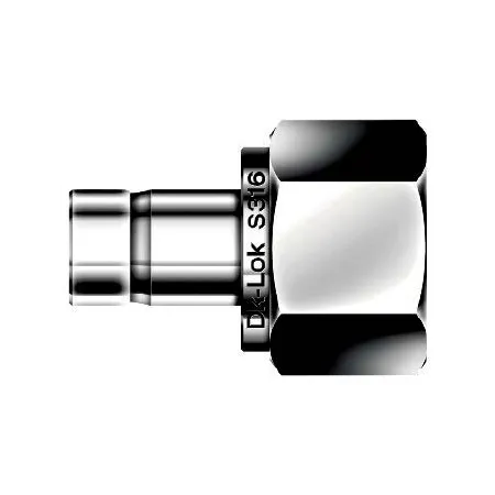 Корпус и комплектующие — нержавеющая сталь AISI 316; конструкция — обжим двумя кольцами и гайкой; подключения: канал 1 — внутр. резьба G1/8 с местом под прокладку DIN 3852, канал 2 — втулка под трубку 6 мм. Применимы рабочие среды: масла, вода, технологические газы, агрессивные среды, совместимые с 316 SS. Типичные эксплуатационные параметры для аналогичных изделий DK‑Lok: рабочее давление до ~400 бар (в зависимости от диаметра и стенки трубки) и диапазон температур примерно −60…+200 °C с учётом уплотнений.