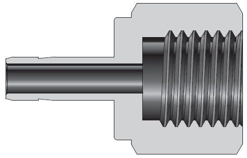 Прямой переходник с внутренней резьбой под манометр втулочного типа предназначен для надежного подключения приборов давления к трубопроводам Ø6 мм. Соединение реализовано по схеме G3/8 — 6 мм: канал 1 — резьба G3/8 для манометра, канал 2 — втулка под трубку 6 мм. При затяжке гайки две обжимные кольцевые системы (передняя и задняя втулки) цилиндрически деформируют трубку, фиксируя её и создавая механическое уплотнение; герметичность по резьбе обеспечивается прокладкой, посаженной по внутренней проточке корпуса. Конструкция рассчитана на приборные подводки и линию отбора в технологических системах.