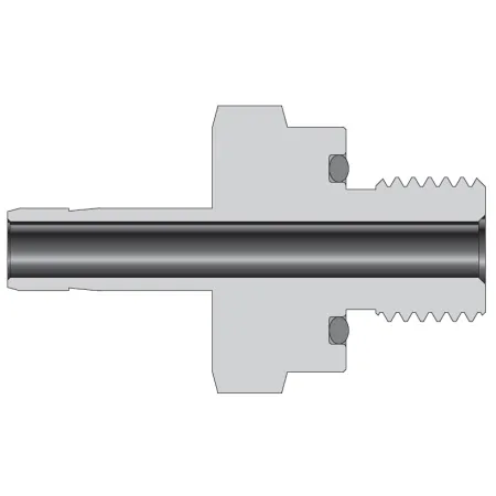 Переходник прямой с нар. резьбой втулочный предназначен для герметичного соединения 1/4″ (6,35 мм) трубки с резьбовыми портами UNF 7/16″-20 в системах контрольно-измерительной и технологической арматуры, гидравлики и газоаналитики. Соединение реализовано по принципу двухфланцевого обжима: две обжимные втулки (ferrules) и гайка фиксируют трубку механически, а уплотнение резьбы обеспечивает утопленное O-ring в штуцере, что исключает текучесть через резьбу и повышает надежность при вибрации и циклических нагрузках. Конструкция рассчитана на эксплуатацию с тонкостенными и стандартными трубами 1/4″.