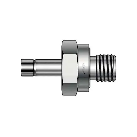 Корпус и элементы конструкции изготовлены из нержавеющей стали AISI 316, материал обобщённо — сталь нержавеющая, что обеспечивает коррозионную стойкость в агрессивных средах и совместимость с гидравлическими маслами, морской водой и технологическими газами. Конструкция: обжим трубки двумя обжимными кольцами и гайкой; уплотнение резьбы — утопленное O‑ring. Подключения: канал 1 — UNF 3/4″-16, канал 2 — 1/2″ (втулка), исполнение с наружной резьбой. Типичные рабочие давления для фитингов аналогичного типоразмера достигают ~420 бар (≈6000 psi) в зависимости от диаметра трубки и стенки; температурный диапазон зависит от материала O‑ring (например, FKM ≈ -20…+200 °C, PTFE до +260 °C).