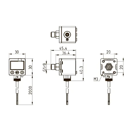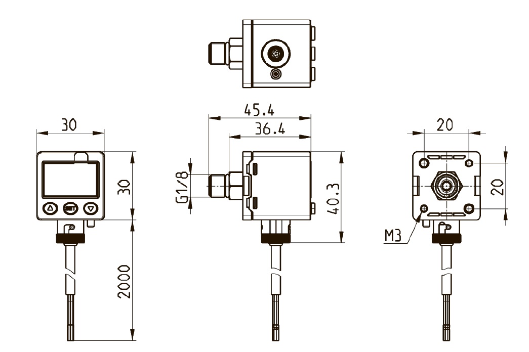 - Два программируемых выхода PNP для установки верхнего и нижнего предельных значений