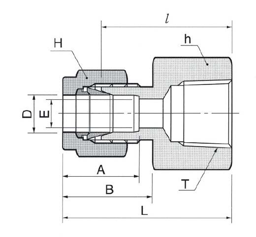 Обжимной прямой штуцер DK-Lok DCF16-12N-SA предназначен для перехода с конической резьбы NPT3/4 (канал 1) на трубное присоединение 1″ (канал 2) в технологических линиях измерений, пробоотборе и системах управления. Функционирует по принципу двухкольцевого обжима: при затяжке гайки два обжимных кольца последовательно формируют герметичное металло-металлическое соединение трубки, а резьба уплотняется ФУМ-лентой (PTFE) для исключения протечек по наружной конической резьбе. Конструкция рассчитана на рабочие среды жидких и газообразных сред в широком диапазоне давлений и температур в зависимости от трубки и условий монтажа.
