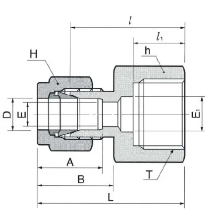 Корпус и основные элементы изготовлены из нержавеющей стали AISI 316, что обеспечивает коррозионную стойкость и совместимость с агрессивными средами. Соединение — обжим с двумя обжимными кольцами и гайкой, подпираемая внутренняя прокладка для уплотнения по проточке — исключает протечки при вибрации и циклических нагрузках. Подключение: G1/4-1/2″ (канал 1: G1/4; канал 2: 1/2″ трубка). Типичные эксплуатационные диапазоны зависят от материала прокладки и толщины стенки трубки; для исполнений AISI 316 при корректной установке рабочее давление может соответствовать значениям, типичным для обжимных фитингов DK‑Lok (порядка сотен бар в зависимости от размера), температурный диапазон определяется уплотнением и может варьировать в широких пределах от низких до +150…+200 °C для металлических и фторполимерных прокладок.