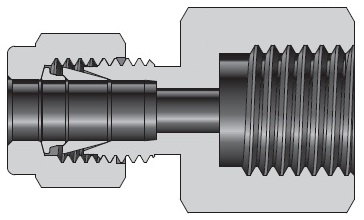 Корпус и обжимные элементы изготовлены из нержавеющей стали AISI 316, стойкой к коррозии и большинству рабочих сред. Подключения: канал 1 — внутренняя резьба G1/2, канал 2 — обжим под 1/2" трубку (Ø 12,7 мм). Уплотнение резьбы — прокладка по внутренней проточке, что обеспечивает повторяемую герметичность без применения пасты; конструкция двух обжимных колец гарантирует надежность при вибрации. Типичные диапазоны: рабочее давление до нескольких сотен бар (зависит от толщины стенки трубки, исполнения), температурный диапазон от ≈−196 °C (криогенные среды с металлическим уплотнением) до +300…+400 °C для металлокерамических/металлических уплотнений.