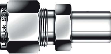 Корпус и комплектующие выполнены из нержавеющей стали AISI 316, материал изделия — сталь нержавеющая, что обеспечивает повышенную коррозионную стойкость и совместимость с агрессивными средами. Конструкция — обжим трубки с помощью двух обжимных колец (фронтальное и тыльное) и гайки DK‑Lok; уплотнение — металлоконтактное за счёт правильного зажимного профиля. Рекомендуемые рабочие параметры зависят от толщины трубки, но типично для 1/2″ размеры допускают давления до ~414 бар (6000 psi) при температурах от криогенных значений до ~+400 °C, ограниченных средой и технологией сварки.