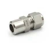 Корпус и элементы — нержавеющая сталь AISI 316, что обеспечивает коррозионную стойкость в агрессивных средах (вода, масло, гидравлические и инертные газы). Конструкция — обжим трубки с помощью двух обжимных колец и гайки; уплотнение — металл по металлу колец и трубки. Присоединения: канал 1 — 12 мм (трубка), канал 2 — 3/8″ (под приварку). Типичные эксплуатационные параметры: рабочее давление до ≈420 бар (≈6000 psi) в зависимости от толщины стенки трубки и системы, температурный диапазон ориентировочно от −60 °C до +200 °C в зависимости от уплотнителя и среды.