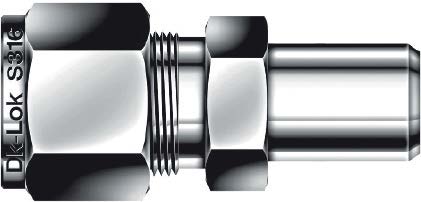 Обжимной прямой штуцер под приварку DCW8M-4P-SA DK-Lok предназначен для перехода от трубки Ø8 мм к приварному патрубку 1/4″ в технологических линиях измерения и управления (КИПиА), гидропневматике и сверхвысокочастотных системах. Работает по принципу двухконусного обжима: трубка вставляется в седло, две обжимные кольца (фервулы) фиксируются гайкой, формируя герметичный металлический уплотняющий контакт без применения резиновых уплотнений. Приварной конец 1/4″ предназначен для стыковой сварки к аппарату или магистрали с последующей проверкой герметичности.