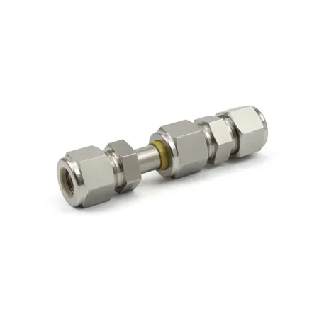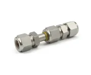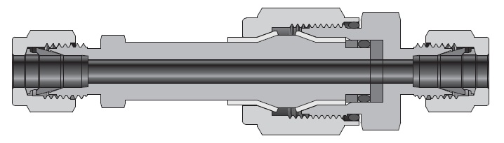 Корпус и обжимные элементы — нержавеющая сталь AISI 316 (коррозионно‑стойкая марка), материал трубки — 3/8″. Тип уплотнения резьбы — ФУМ‑лента; уплотнение трубки — двухкольцевая обжимная система с гайкой DK‑Lok. Наличие полимерной диэлектрической вставки (в исполнениях PTFE/PEEK) гарантирует электрическую изоляцию. Типичные эксплуатационные ориентиры: рабочее давление до ≈6000 psi (≈414 бар) в зависимости от размера и условий, рабочая температура примерно от −54 °C до +204 °C; конкретные пределы уточняйте по паспорту изделия и рабочей среде.