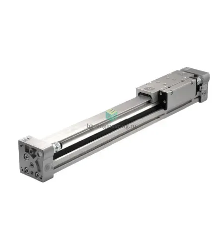 - Поршень привода имеет механическую связь с кареткой, что обеспечивает жёсткость конструкции и высокую нагрузочную способность привода;