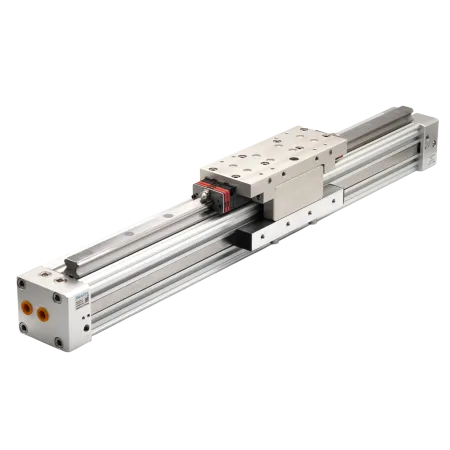 - Поршень привода имеет механическую связь с кареткой, что обеспечивает жёсткость конструкции и высокую нагрузочную способность привода