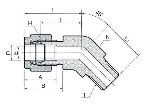 Угловой обжимной штуцер 45° с наружной резьбой NPT1/4 — предназначен для коммутации трубок Ø6 мм с резьбовыми портами приборов и трубопроводов в системах автоматики, КИПиА и гидравлике. Конструкция обеспечивает уплотнение резьбы ФУМ-лентой и герметичное металло-металлическое соединение трубки за счёт двух обжимных колец и гайки: при затяжке кольца смещаются и фиксируют трубку, передавая осевую и радиальную нагрузки, исключая утечки при давлении рабочей среды.