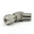 Угловой обжимной штуцер 45° с наружной резьбой предназначен для подключения магистральных трубок Ø 1/2" к резьбовым портам NPT3/8 в трубопроводах измерительной и пневмо- / гидросистемах. Конструкция с двумя обжимными кольцами и гайкой создает герметичное соединение трубки без сварки: при затяжке гайки первая и вторая гильзы смещаются и фиксируют трубку, обеспечивая контакт металла с металлом. Резька уплотняется ФУМ-лентой (PTFE), что обеспечивает стойкость к утечкам при вибрации и циклических нагрузках.