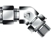 Угловой 45° поворотный штуцер с наружной UNF резьбой 1 5/16″-12 и присоединением под трубку 1″ (25,4 мм) предназначен для изменения направления и выравнивания линий сред давлением в технологических и контрольно-измерительных системах. Комбинация наружной резьбы и обжимного соединения с двумя обжимными кольцами и гайкой обеспечивает герметичное, упругое соединение без сварки или пайки. Выступающее уплотнительное кольцо O-ring обеспечивает первичную уплотняющую поверхность на резьбовом переходе и дополняет механическую герметизацию обжимом, что уменьшает вероятность утечек при вибрации и при регулировках ориентации фитинга.