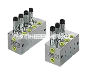 Распределитель двухлинейной смазки (серия DLDD), 0-5 см3/цикл, 2 секции (4 выхода), вход G3/8", выходы G1/4"