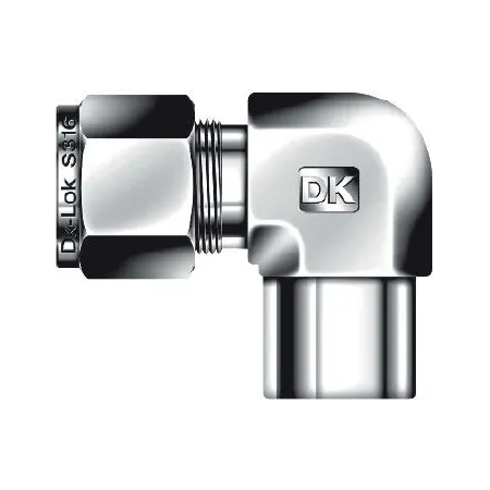 Обжимной угловой штуцер с внутренней резьбой NPT1/8–1/8" предназначен для прокладки линий технологической и контрольно-измерительной арматуры в системах сжиженных и сжатых сред, гидравлике и пневматике. Форма — 90° угол позволяет изменять направление трубопровода без применения гибки трубки. Функция реализуется через двухкольцевой обжимной механизм: труба вставляется в гнездо, гайка прижимает две обжимные кольца (фронтальную и заднюю), формируя герметичное соединение; резьба NPT на корпусе герметизуется ФУМ-лентой при нарезном подключении к агрегату или вентилю.