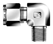 Угловой штуцер обжимной с наружной резьбой предназначен для подключения приборных и технологических трубопроводов в системах измерения, пневматики и гидравлики. Соединение реализовано по принципу двухобжимной компрессионной конструкции: при затяжке гайки две обжимные гильзы (фирменная двухклещовая система DK‑Lok) уплотняют трубку 7/8" (≈22,23 мм) и фиксируют её механически, а резьбовое соединение NPT3/4 служит для присоединения к резьбовому патрубку. Резьба дополнительно герметизируется ФУМ‑лентой; конструкция обеспечивает герметичность и механическую прочность при приборных давлениях и в технологических трассах.