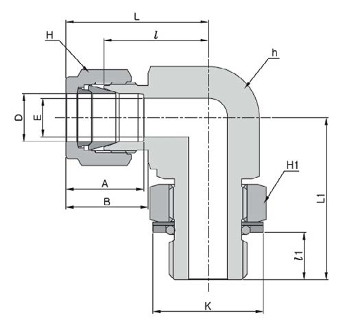 Угловой обжимной штуцер с наружной резьбой G1/8 и присоединением под трубку 8 мм предназначен для прокладки приборных, пневматических и гидравлических линий 90° с возможностью поворотного ориентирования без прокручивания трубки. Соединение реализует комбинированный принцип: уплотнение резьбы — O-ring со стопорным кольцом и шайбой по DIN 3852 форма H, уплотнение линии — двухкольцевая обжимная конструкция (две обжимные гильзы и гайка). При правильной подготовке трубки обеспечивает герметичность при типичных рабочих давлениях до ≈400 бар и в рабочих температурах ориентировочно −60…+200 °C (точно зависит от материала O-ring и среды).