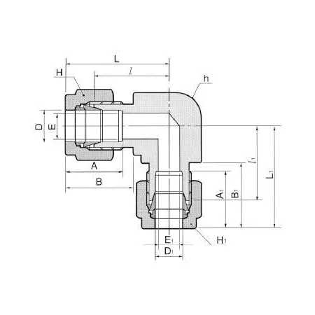 Обжимной угловой соединитель DLR4-2-SA DK-Lok предназначен для компактного перехода и герметичного соединения трубок 1/4″ (канал 1) и 1/8″ (канал 2) в приборных и технологических линиях (инструментальная арматура, системы измерения, газовые/жидкостные трассы). Работает по принципу флерлесс‑обжима: при затяжке гайки два обжимных кольца прижимаются к корпусу из нержавеющей стали AISI 316, формируя металлическое уплотнение без применения уплотнителя резьбы.