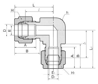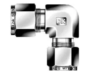 Угловой соединитель обжимной для трубок 3/8–1/4" применяется в системах измерения, подачи технологических сред и малогабаритных гидросистемах для изменения направления трассы на 90° и редукции с 3/8″ (канал 1) на 1/4″ (канал 2). Герметизация достигается механическим обжатием трубки двумя обжимными кольцами и гайкой; резьбовое уплотнение не используется. Конструкция обеспечивает контактное уплотнение на поверхности трубки без применения уплотнительных компаундов, что важно для сред высокой чистоты и аналитических линий.