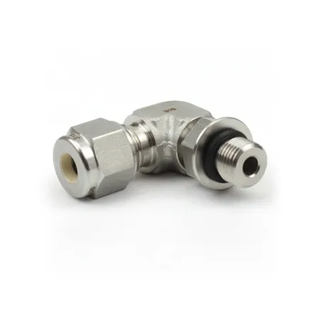 Угловой поворотный штуцер с наружной резьбой UNF 1 7/8″-12 и подключением под трубку 1 1/2″ предназначен для перехода от резьбового порта к трубопроводу в системах КИПиА, гидравлики и технологических разводок. Конструкция с поворотной резьбовой частью и выступающим O‑ring обеспечивает уплотнение резьбы при развороте, а двухкольцевая обжимная система (две обжимные конические гильзы и гайка) фиксирует трубку без сварки. Изделие решает задачи компактного изменения направления трассы, компенсации монтажных допусков и обеспечения герметичности при рабочих давлениях, зависящих от диаметра и толщины стенки трубки (типично до 345 бар / 5000 psi при стандартных трубах).