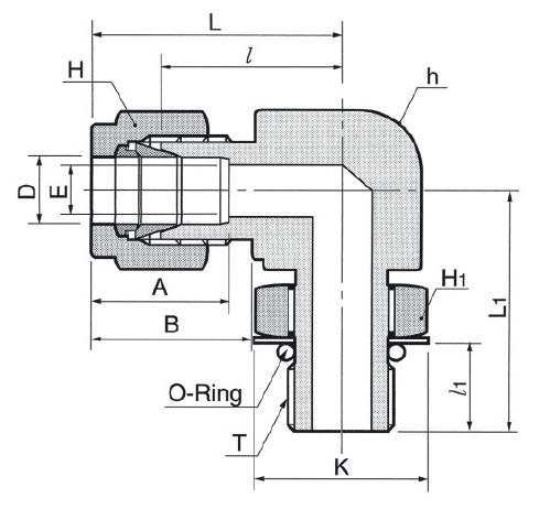 Корпус и внутренние элементы из AISI 316 обеспечивают коррозионную стойкость и совместимость с агрессивными средами (нефть, масла, вода, инертные газы). Конструкция — двухколечный обжим (две феррулы + гайка) для металлометаллического уплотнения трубки и дополнительного резинового O‑ring на резьбе для гарантии плотности. Типичное рабочее давление при стандартных размерах может достигать порядка 420 бар (≈6000 psi) в зависимости от диаметра и условий эксплуатации; температурный диапазон зависит от материала уплотнения (ориентировочно −60…+200 °C для типов уплотнений, применимых к данной конструкции).