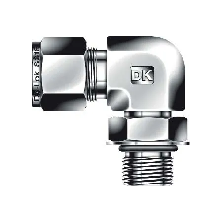 Угловой штуцер поворотный с наружной резьбой UNF 1/2"-20 и присоединением под трубку 5/16" предназначен для подсоединения контрольно-измерительных приборов, манометров, регуляторов и отводов технологических линий в системах жидкостей и газов. Конструкция обеспечивает герметичное соединение трубки методом обжима двумя обжимными кольцами и гайкой; вращающаяся резьбовая часть позволяет ориентировать вывод без закручивания трубки. Выступающее O‑ring уплотняет резьбу, снижая риск утечек при высоком давлении. Материал корпуса — сталь нержавеющая AISI 316, канал 1 — UNF 1/2"-20, канал 2 — 5/16" трубка.