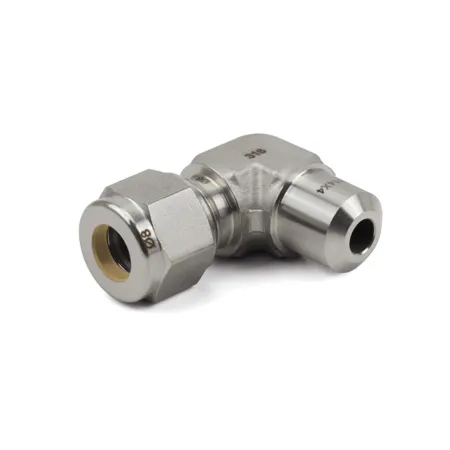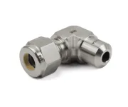 Угловой штуцер под приварку внахлёст DLSW12-12-SA предназначен для присоединения 3/4″ (19,05 мм) трубки к ответной части трубопровода с приварным фланцем внахлёст в системах измерения и распределения сред. Принцип работы — герметичное создание соединения с помощью обжимной пары конических колец и гайки (двух обжимных колец и гайки), при этом вторая сторона фиксируется приваркой «внахлёст», что даёт прочную жесткую посадку на стационарной магистрали.