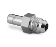 Корпус и обжимные элементы — нержавеющая сталь AISI 316, стойкая к коррозии агрессивных сред. Двухколечная конструкция увеличивает виброустойчивость и надежность уплотнения при давлении до ≈300 бар (в зависимости от толщины стенки трубки и режима), эксплуатационная температура от −45°C до +200°C. Подключение: канал 1 — втулка 1/2″, канал 2 — развальцовка 5/8″; резьба гайки UNF 7/8″-14. Конструкция без резьбового уплотнения (уплотнение обеспечивается конической посадкой и обжимом), соответствует требованиям промышленных гидросистем.