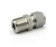 Корпус и элементы — сталь нержавеющая AISI 316, двойной обжим (две феррулы + гайка) обеспечивает стабильную механическую фиксацию и повторяемую герметичность. Уплотнение резьбы — ФУМ-лента; уплотнение трубки — металлическое, без пластичных прокладок. Применим в средах: сжатые и инертные газы, вода, гидравлические и технические масла; монтаж возможен в температурном диапазоне типично от −60°C до +200°C в зависимости от состава среды. Рабочее давление для подобных обжимных исполнений на трубках 1/16" обычно достигает сотен бар (зависит от толщины и материала трубки); окончательное допустимое давление определяется трубопроводной трубкой и условиями монтажа.