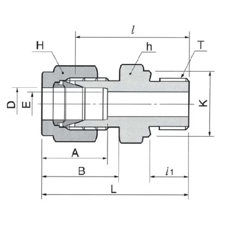 Обжимной штуцер прямой с наружной резьбой G1/2 — переходное соединение для подсоединения трубки Ø16 мм к резьбовым портам с уплотнением металлической прокладкой DIN 3852-2 форма B. Предназначен для систем технологической и измерительной автоматики, гидравлики, пара и агрессивных сред, где требуется герметичное металлическое уплотнение и высокая коррозионная стойкость. Работает по принципу обжатия трубки двумя обжимными кольцами и гайкой: при затяжке кольца формируют плотную коническую посадку на трубке, обеспечивая уплотнение и механическую фиксацию; металлическая прокладка DIN 3852-2 обеспечивает герметизацию резьбовой части при повышенных температурах и давлениях.