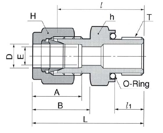 Корпус и комплект контакта выполнены из нержавеющей стали AISI 316, устойчивой к коррозии и совместимой с агрессивными средами. Уплотнение по резьбе — утопленное O‑ring (возможны материалы FKM/FPM, NBR или PTFE по заказу). Функционирует как двухкольцевый обжимной фитинг DK‑Lok: одна конусная гильза фиксирует трубку, вторая — противодействует осевому смещению. Рабочие среды: нейтральные и агрессивные жидкости, газовые смеси, гидравлические масла. Типичное рабочее давление зависит от диаметра трубки и материала O‑ring; для 1/8" трубок у подобных изделий нормативно указывают рабочие давления до ~400 bar (≈5800 psi) при комнатной температуре. Температурный диапазон определяется материалом уплотнения: типично −20…+200 °C (в зависимости от типа O‑ring).