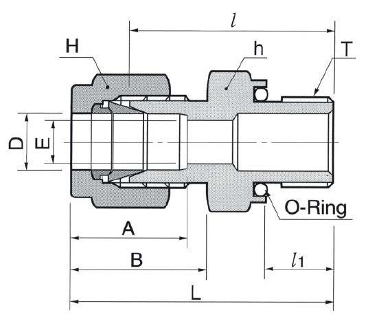 Корпус — нержавеющая сталь AISI 316, обжимные кольца — сталь/нерж. исполнение; применение AISI 316 обеспечивает коррозионную стойкость в агрессивных средах. Уплотнение резьбы — утопленный O-ring (материал уплотнения по спецификации: типично FKM/EPDM/PTFE), позволяющий работать при температурах примерно от −20 до +200 °C в зависимости от выбранного материала кольца. Двухколецовый обжим гарантирует надежную герметизацию трубок 6,35 мм при давлениях до ≈413 bar (6000 psi) в типичных условиях эксплуатации; фактический предел зависит от толщины стенки трубки и СМИ.