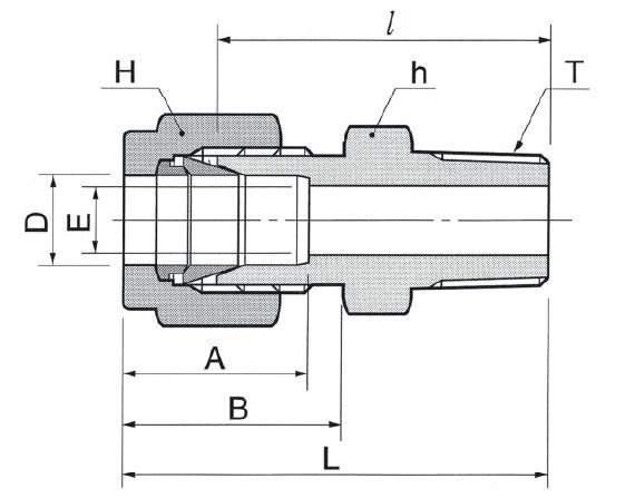 Корпус и феррулы — нержавеющая сталь AISI 316, общая материаловая группа — нержавеющая сталь; резьба R1/8 (BSPT) — наружная. Исполнение — двухферрульное обжимное: переднее ферруло формирует уплотнение, заднее — удерживает трубку. Уплотнение резьбы — ФУМ‑лента (не применять жидкие пасты внутри прохода). Применимо для жидких и газовых сред, в том числе агрессивных сред до уровня коррозионной стойкости AISI 316. Типичные эксплуатационные диапазоны зависят от толщины стенки трубки: рабочее давление для трубок Ø5/16″ — ориентировочно до 200–350 бар; температурный диапазон без эластичных уплотнений — примерно от −196 °C до +400 °C.