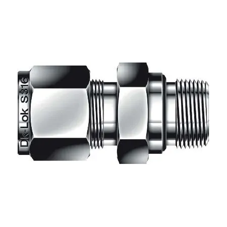 Корпус и обжимные элементы — нержавеющая сталь AISI 316, стойкая к коррозии и агрессивным средам. Конструкция — двухобжимная (две ferrule + гайка) обеспечивает надёжную фиксацию и повторную разборку при техобслуживании. Уплотнение резьбы — утопленный O‑ring; материал O‑ring подбирается под среду (например, FKM/Viton, NBR, PTFE), что определяет рабочий температурный диапазон: ориентировочно NBR −30…+100 °C, FKM −20…+200 °C, PTFE до +250…+260 °C. Типичное допустимое давление для аналогичных двухобжимных NPT 1/2 исполнений достигает порядка 6000 psi (≈413 бар) при комнатной температуре, конкретная величина зависит от толщины стенки трубки и условий эксплуатации.