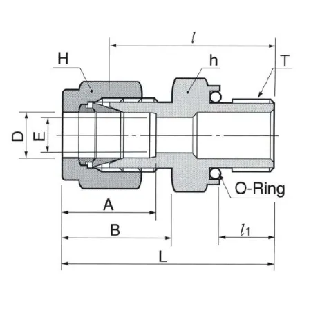 Прямой обжимной штуцер с наружной UNF‑резьбой предназначен для герметичного присоединения трубки Ø1/2" к резьбовому порту с наружной резьбой UNF 3/4"-16. Изделие решает задачи коммутации приборных линий, стендов и технологических сборок с повышенными требованиями к утечкам и виброустойчивости. Принцип работы — двухкомпонентная обжимная конструкция: две обжимные гильзы (ferrule) и гайка обеспечивают механическое удержание трубки, а утопленное уплотнительное кольцо O‑ring на резьбе обеспечивает дополнительную герметизацию между корпусом и ответной деталью.