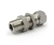 Корпус и обжимные элементы изготовлены из нержавеющей стали AISI 316, что обеспечивает коррозионную стойкость в агрессивных средах. Конструкция — двухкольцевой обжим (две феррулы + гайка) для надежного захвата трубки Ø12 мм; вход — наружная резьба NPT 3/8. Рекомендуемый температурный диапазон эксплуатации типично −50…+200 °C (зависит от среды и уплотнения), рабочее давление — до ~400 бар (в зависимости от сечения трубки и условий монтажа). Резьба уплотняется ФУМ-лентой; тип исполнения — панельный монтаж с фиксацией по резьбе.