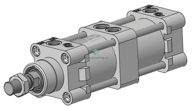 - Конструкция объединяет два пневмоцилиндра, которые создают повышенное усилие;