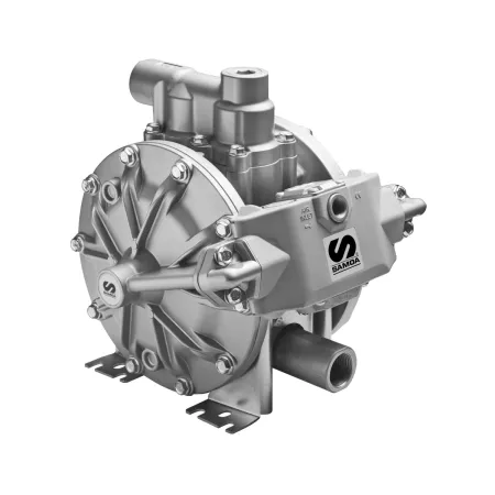 Пневматический мембранный насос DP200 с технологией прямого потока DirectFlow. В этом насосе жидкость прокачивается через центральную часть насоса, а воздух воздействует на внешнюю сторону мембран.