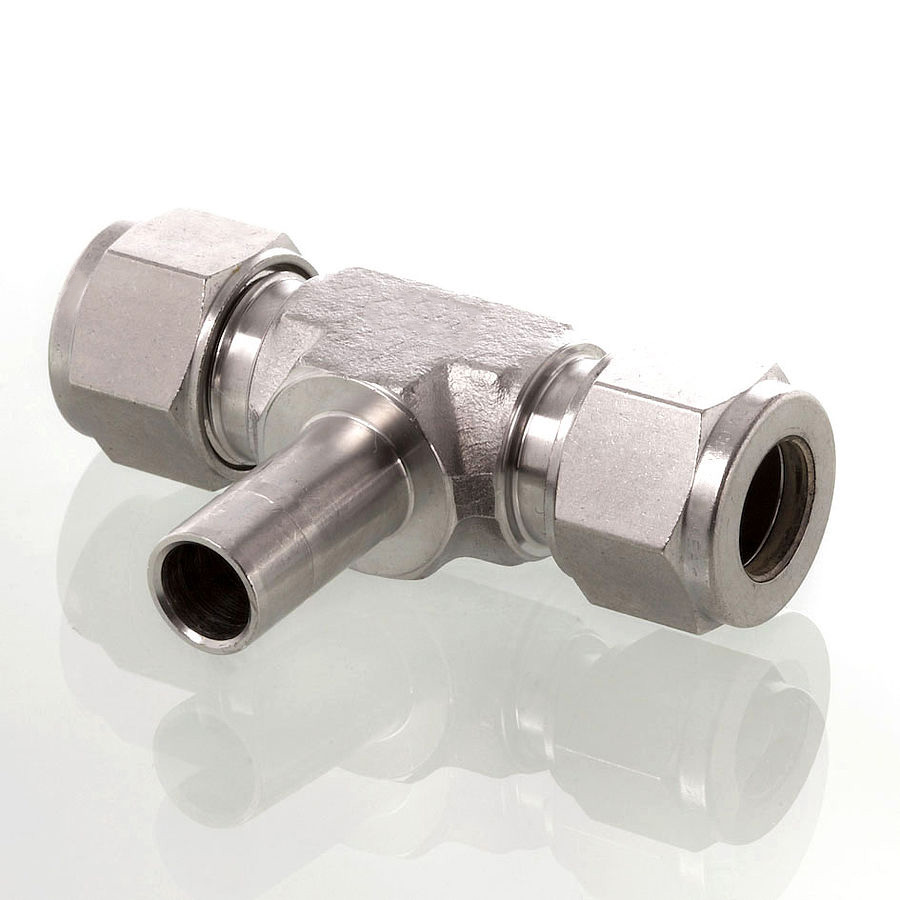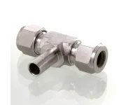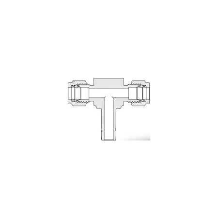 T‑образный осевой втулочный переходник для трубки Ø 8 мм служит для разветвления или изменения конфигурации линий технологической и приборной арматуры. Конструкция на принципе обжима: трубка вставляется в канал, на неё надеты две обжимные втулки и гайка; при затягивании создаётся герметичное уплотнение металлом по металлу и втулкой. Применяется в системах передачи сжатых газов, гидравлики и аналитических пробопроводов, где требуется компактное тройниковое ответвление при рабочих диаметрах 8 мм.