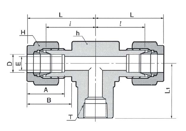 Тройник T-образный обжимной с осевой внутренней резьбой предназначен для ответвления и соединения линий инструментальной арматуры и трубопроводов малого диаметра. Выполнение: NPT1/4 (порта) — ответвление, канал 2 — под трубку 1/8″ (3,175 мм) с обжимным соединением на двух конических обжимных кольцах и гайке; резьвовое уплотнение рекомендовано выполнять ФУМ-лентой. Принцип работы — герметичное механическое зажатие тонкостенной трубки между передней и задней обжимными кольцами при затяжке гайки и герметизация резьбового порта через PTFE-уплотнение; подходит для измерительных, пневматических и гидравлических линий.