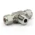 Тройник T-образный с осевой наружной резьбой NPT3/8 — обжимной фитинг для отвода рабочей среды на ответвление от магистрали трубопровода с подключением трубки 5/8" (OD). Применяется в технологических линиях КИПиА, гидравлике и пневматике для развязки потоков, слива, отбора проб и подключения датчиков давления/температуры. Работает по принципу механического уплотнения трубки двумя обжимными кольцами (феррулами) и гайкой; резьбовое соединение NPT уплотняется ФУМ-лентой для герметичности при давлении до значений, ограничиваемых сечением и толщиной стенки трубки (ориентировочно до 4·10^2 бар при стандартных размерах труб). Материал корпуса — нержавеющая сталь AISI 316, что обеспечивает коррозионную стойкость и совместимость с агрессивными средами.