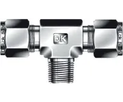 Тройник T-образный с осевой наружной резьбой R3/8 и под приварную/обжимную трубку 16 мм предназначен для разветвления и отвода технологических или измерительных линий в системах водоснабжения, газа, гидравлики и аналитики. Конструкция обжимного соединения с двумя обжимными кольцами и гайкой обеспечивает герметизацию трубки 16 мм без применения сварки; резьбовое соединение уплотняется ФУМ-лентой. При монтаже кольца формируют уплотнительный и механический зажим вокруг трубы, что обеспечивает пропуск сред при типичных рабочих давлениях (в зависимости от толщины стенки трубки) в пределах до нескольких сотен бар и температурном диапазоне ориентировочно от −60 °C до +200 °C, ограниченном материалами уплотнений и средой.