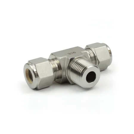 Тройник T-образный с осевой наружной резьбой NPT 3/8 и ответвлением под трубку 6 мм предназначен для разветвления и отбора технологической или измерительной магистрали в системах КИПиА, гидравлики и пневматики. Работает по принципу обжима трубки двумя коническими обжимными кольцами и гайкой с герметизацией резьбы ФУМ-лентой; при затяжке формируется уплотнительный зазор между кольцами и трубкой, обеспечивающий повторяемое герметичное соединение между каналами NPT3/8 и 6 мм трубкой.