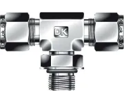 Корпус и основные комплектующие изготовлены из нержавеющей стали AISI 316, стойкой к коррозии агрессивных сред. Тип конструкции — обжим с двумя феррулами и гайкой; резьбовое уплотнение — выступающее O-ring (рекомендуется подбирать материал O-ring по среде: NBR до ≈+120 °C, FKM до ≈+200 °C). Подключения: ответвление UNF 1 1/16″-12; магистраль — 3/4″ трубка; общее подключение указано как UNF 1 1/16″-12-3/4″. Типичные рабочие давления для аналогичных фитингов DK-Lok находятся в диапазоне до ≈414 бар (6000 psi) в зависимости от размера, толщины стенки трубки и выбранного уплотнения; рабочая температура определяется материалом уплотнений и может варьировать примерно от −60 °C до +200 °C.