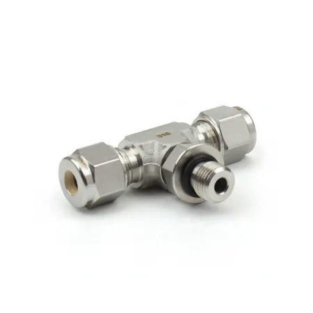 Тройник T-образный с осевым поворотом предназначен для ответвления и распределения рабочих сред в трубопроводах инструментального и технологического оборудования. Конструкция с обжимными кольцами обеспечивает герметичное соединение трубки 1 1/4" с ответом под резьбу UNF 1 5/8"-12; резьбовой порт уплотнён выступающим O-ring для предотвращения утечек в резьбовых соединениях под давлением. При монтаже поток перенаправляется через центральный патрубок в форме «T», а возможность осевого поворота облегчает подгонку трубопровода без дополнительного скручивания трубки.